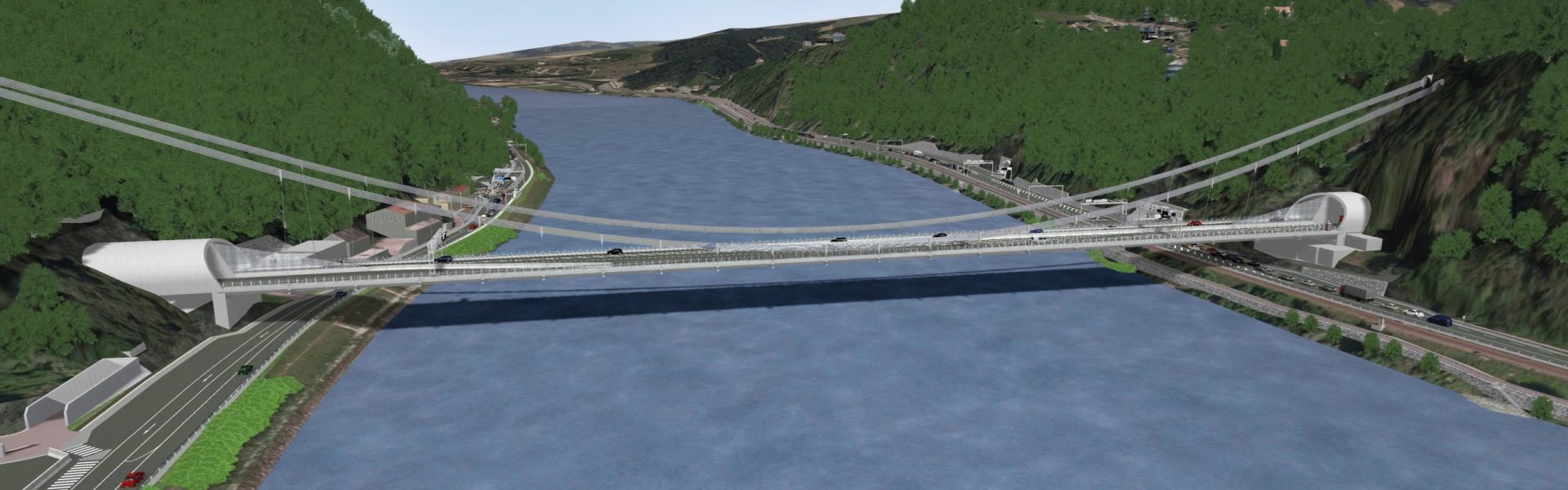 Die neue A26, die 5 km lange Linzer Westumfahrung, wird großteils unterirdisch verlaufen. Aber: An der Oberfläche zeigt sie sich umso spektakulärer! Denn: In ihrem Verlauf wird die A26 die Donau überqueren – und genau dafür entsteht ein einzigartiges Bauwerk: eine 300 m lange und 22,5 m breite Hängebrücke – ohne sichtbare Tragpfeiler. Die tragenden Seile werden direkt in den Fels der Uferwände verankert, was dem Bauwerk mit seinen 13.000 Tonnen optisch eine gewisse Leichtigkeit und Eleganz verleiht.